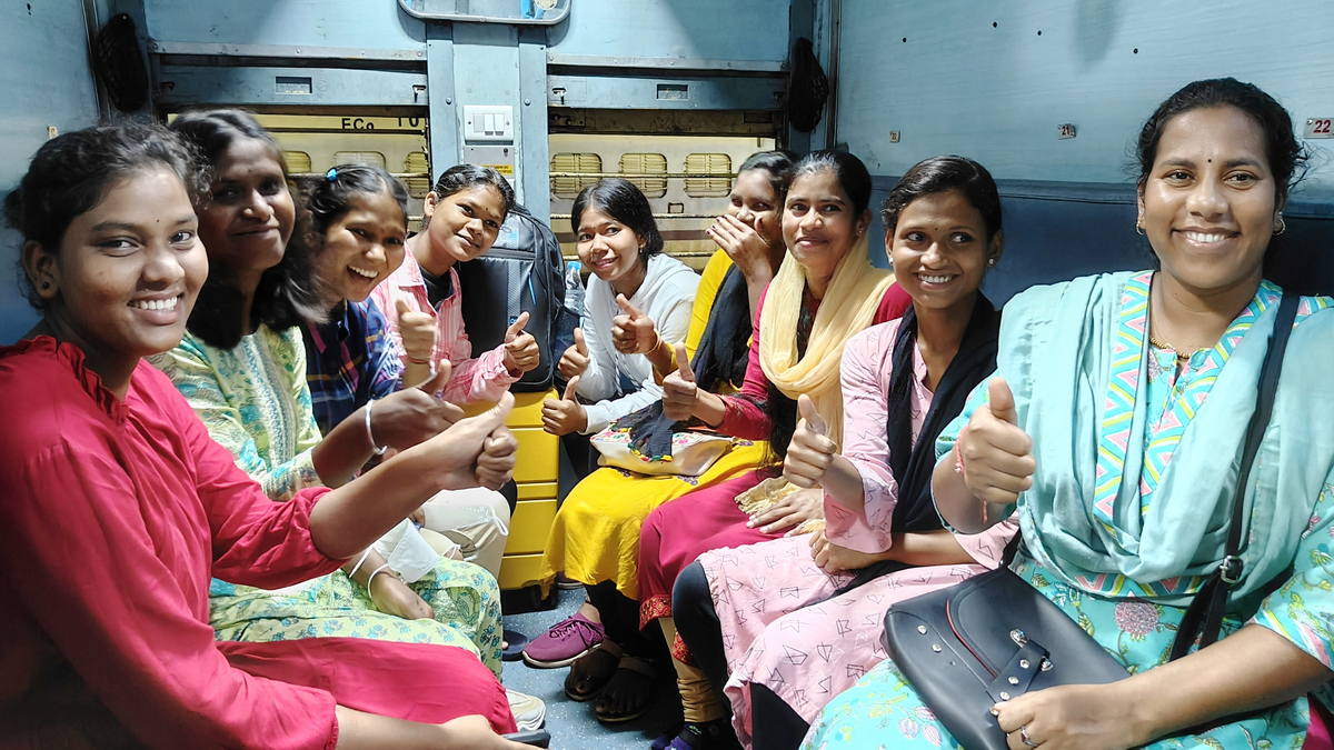 1_FS Homepage_11_2 Veröffentlicht 9. August 2025 am 1200 × 675 Die jungen Frauen sind auf der Fahrt zu neuen Arbeitsstelle in Bangalore