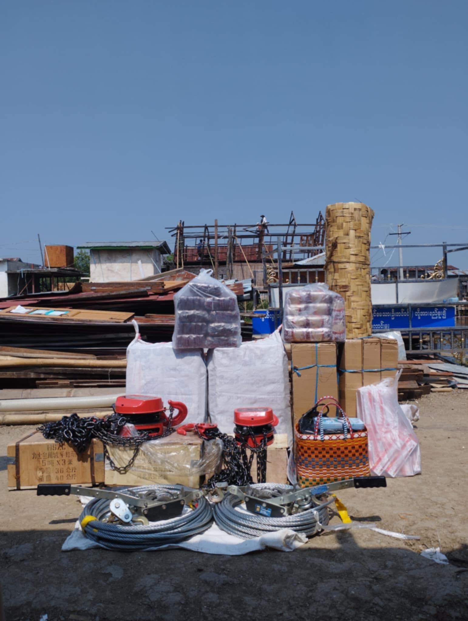 chain block, hand block and steel rope donation for repair damage houses in Inle 02JPG Veröffentlicht 10. August 2025 am 1542 × 2048 Mehrere Sets von Winden und Seilen wurden an die Dörfer verteilt